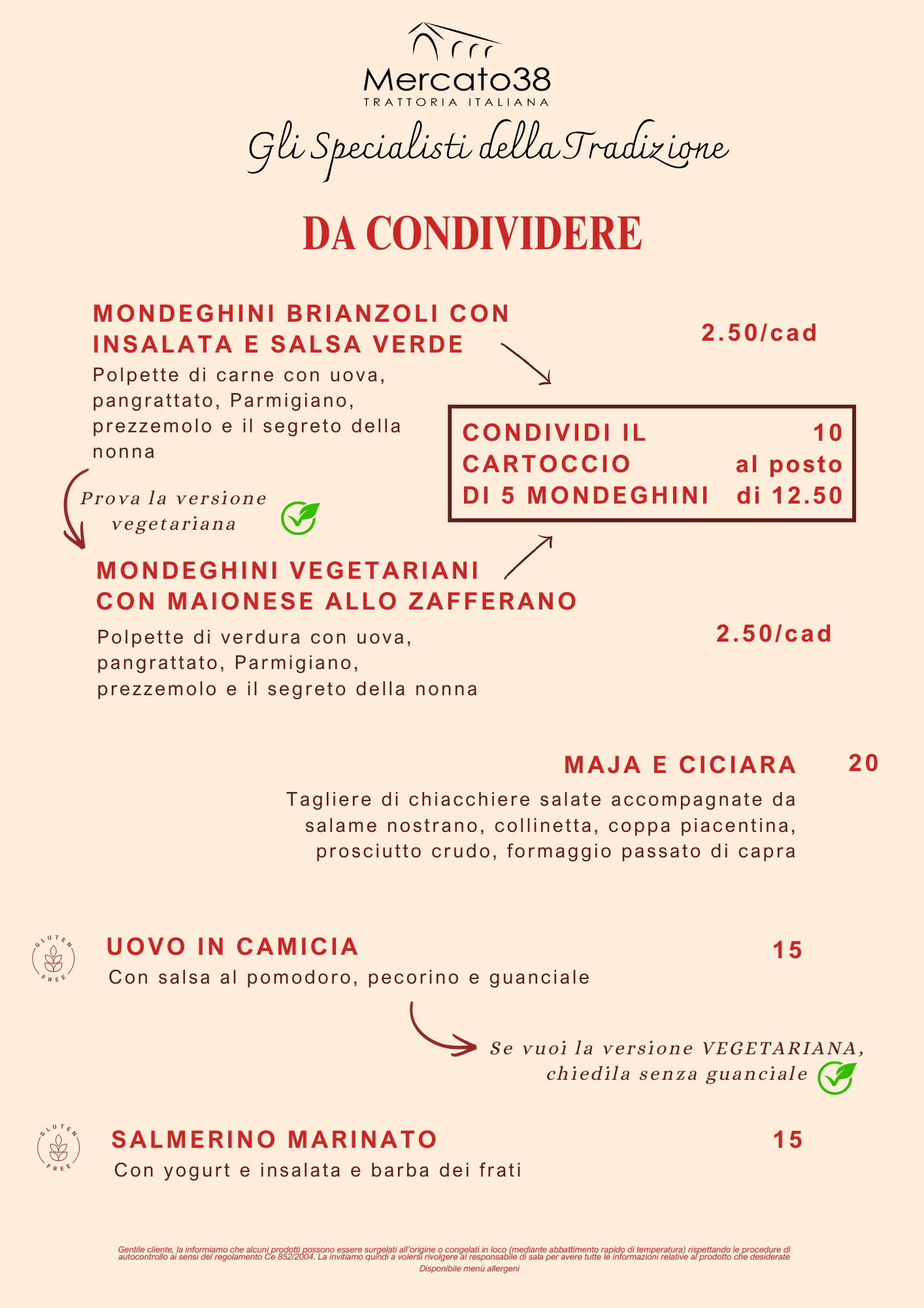 Benvenuti al Mercato 38 Trattoria Italiana di Erba, dove la passione per la cucina italiana incontra l’amore per la qualità. Dal 2019, Manuel e Alice hanno trasformato la loro idea in realtà, creando un luogo unico, informale ma curato, dove ogni piatto racconta una storia di sapori autentici e ingredienti freschi. Il nostro menu ristorante è un invito a esplorare la ricchezza della tradizione culinaria italiana, reinterpretata con fantasia e cura nei dettagli.