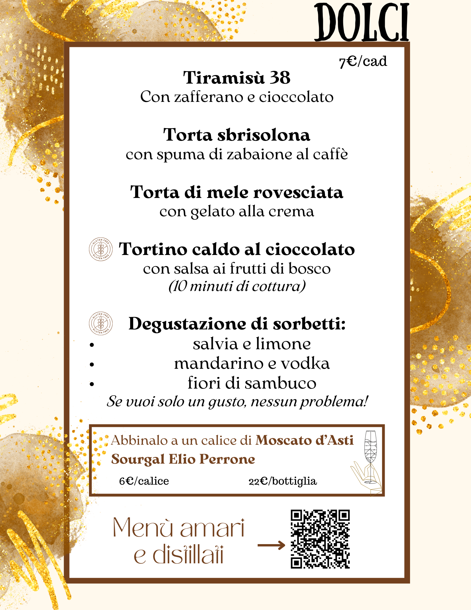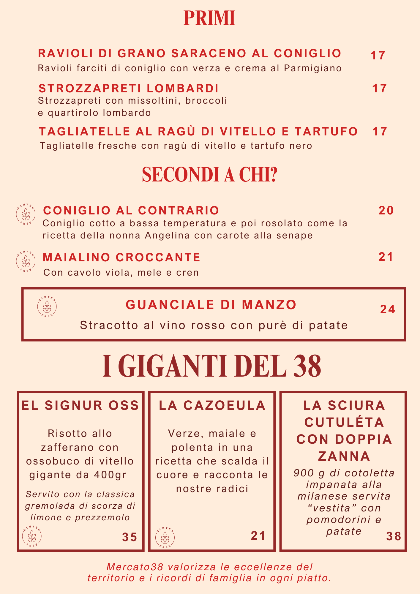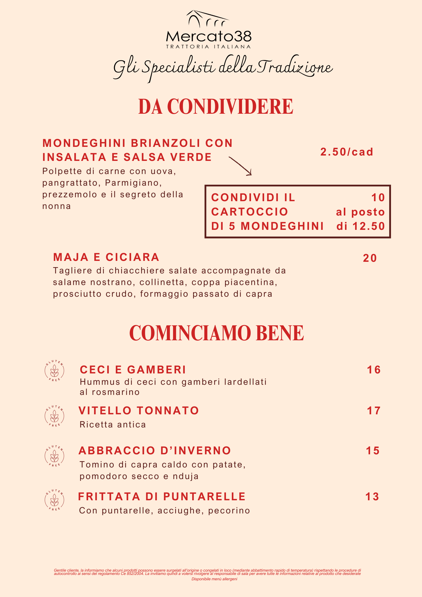 Questo menù e valido anche per il servizio d'asporto.